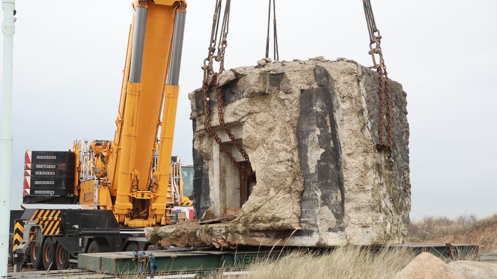 Met een enorme takelwagen is gisteren een kleine bunker op z’n definitieve plek gehesen bij…