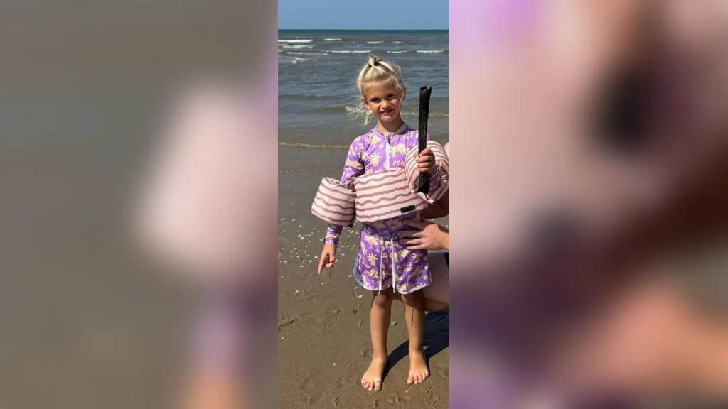 Vera (5) vond in de zee bij strandtent Zilt in Katwijk aan Zee een groot bot, dat na onderzoek een menselijk dijbeenfragment uit de vroege ijzertijd blijkt te zijn.