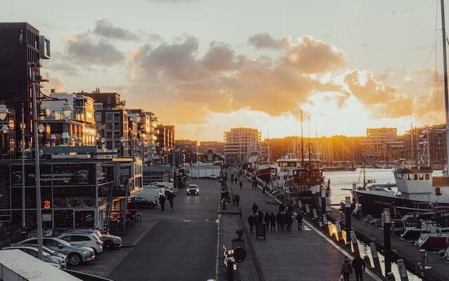 De kade van de Scheveningse haven is donderdagavond ondergelopen. Op foto’s is te zien dat het water op de Dr. Lelykade tot aan de